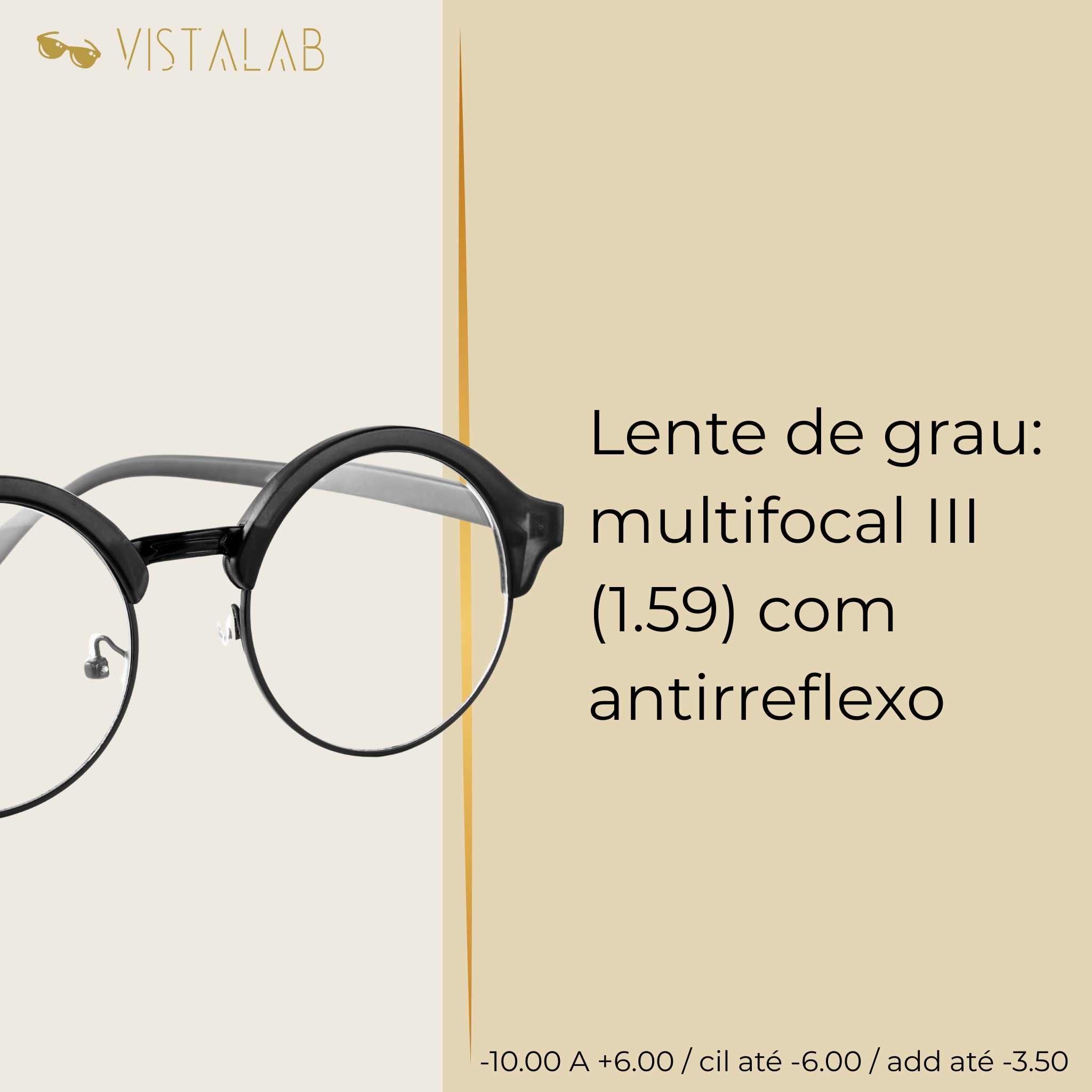 Multifocal incolor (progressiva): transição suave entre perto, intermediário e longe, com conforto no dia a dia.